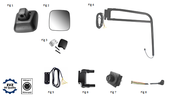 Wide-angle mirrors, mirror arms & fittings
