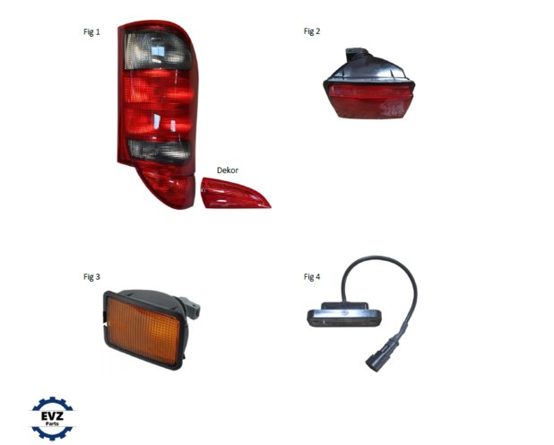Baglygte for glødelamper, VE Position/Stop/Blink/Bak/Tåge |