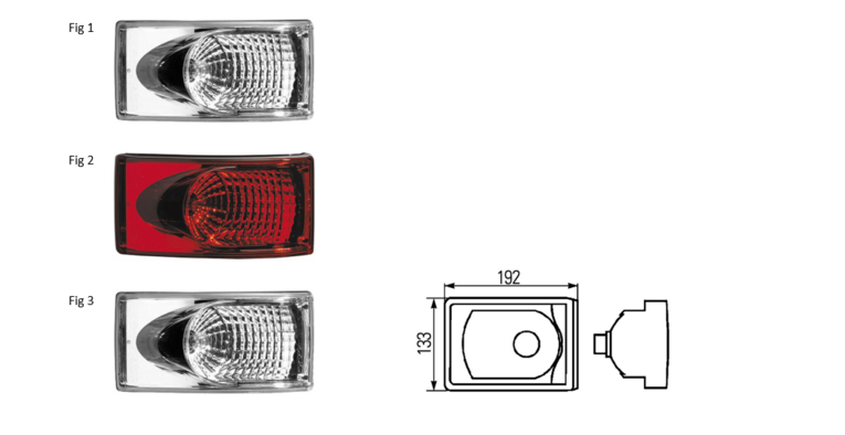 Pos/Stoplygte med klar optik, VE/HØ med lampeholder |