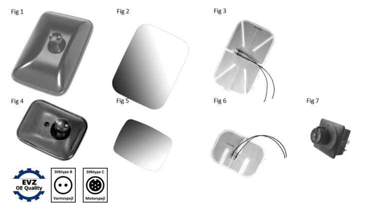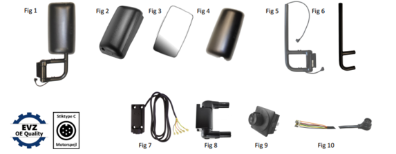El. Justerbare sidespejle & fittings