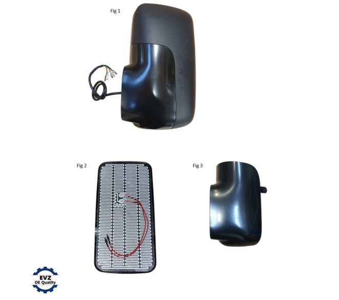 Komplet sidespejl for venstre side El. justerbart sidespejl m/24V varme |