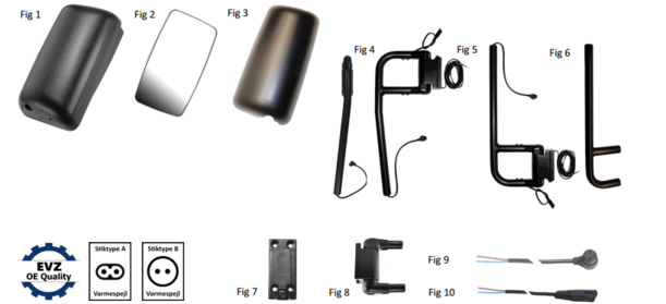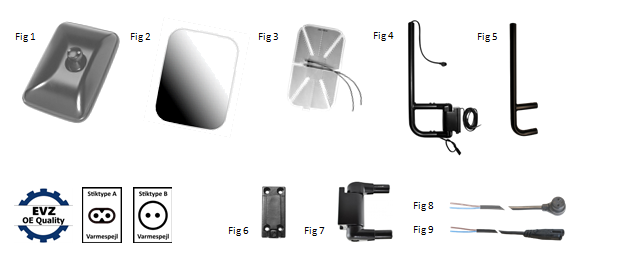 Vidvinkelspejl m/varme Ekstremt konveks R300mm Indbygget 2 polet stik 214x164mm, beslag 20-30mmØ |
