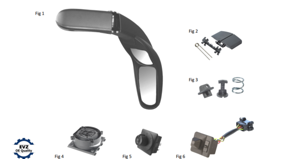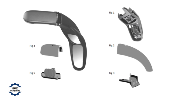 Sidespejl & fittings, højre side