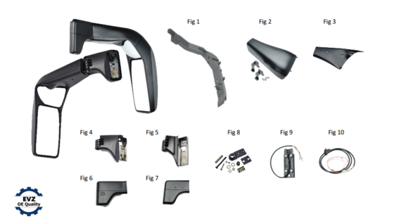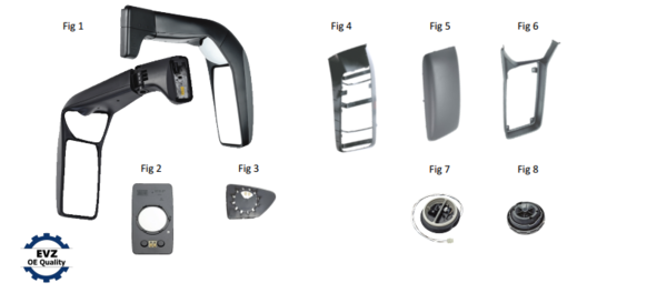 Komplet spejlsystem VE, El. just.bart sidespejl m/varme Leveres uden mont.kile f/chassis |